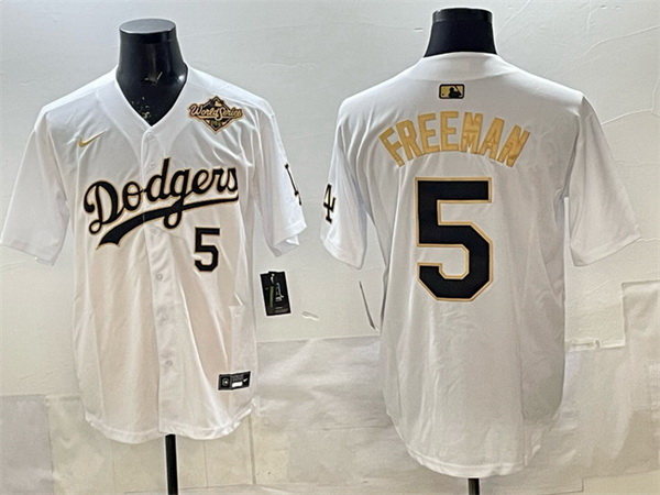 Home>MLB>Los Angeles Dodgers>Men>Men Los Angeles Dodgers 5 Freddie Freeman White Gold 2025 World Series Limited Stitched Baseball Jersey