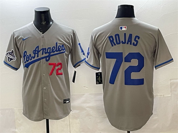 Home>MLB>Los Angeles Dodgers>Men>Men Los Angeles Dodgers 72 Miguel Rojas Grey 2025 World Series Champions Patch Limited Stitched Baseball Jersey