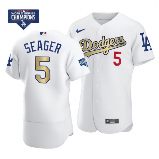 Home>MLB>Los Angeles Dodgers>Men>Men Los Angeles Dodgers Corey Seager 5 Gold Program White Flex Base Stitched Jersey