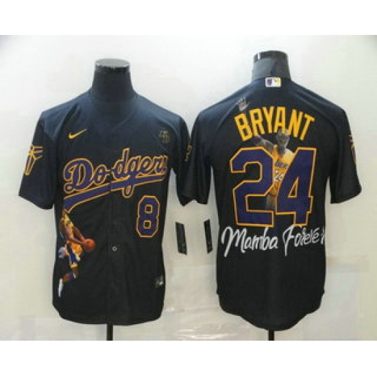 Men Los Angeles Dodgers Front 8 Back 24 Kobe Bryant Black With KB Patch Cool Base Stitched MLB Fashion Jersey