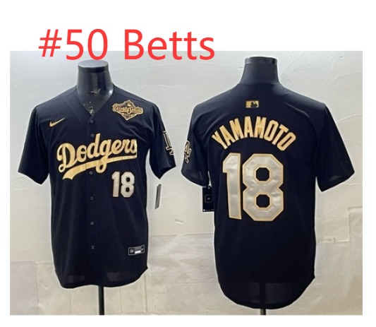 Men Los Angeles Dodgers Mookie Betts #50 Black Gold 2025 World Series Patch Limited Stitched Baseball Jersey