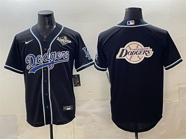 Home>MLB>Los Angeles Dodgers>Men>Men Los Angeles Dodgers Team Big Logo Black Fashion 2025 World Series Cool Base Stitched Baseball Jersey 003