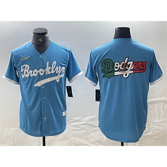 Home>MLB>Los Angeles Dodgers>Men>Men Los Angeles Dodgers Team Big Logo Light Blue Throwback Cool Base Stitched Baseball Jersey 4