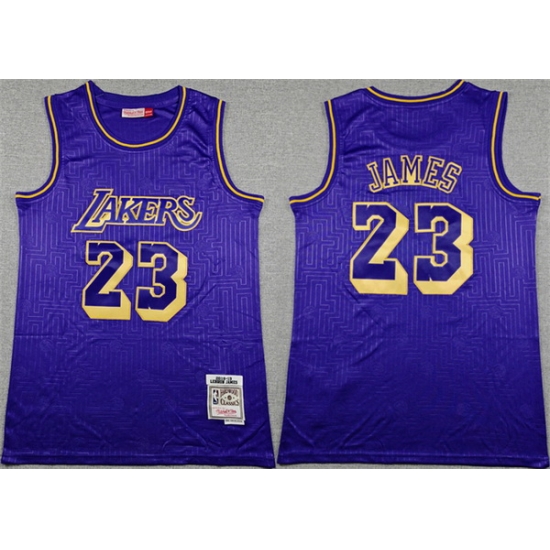 Men Los Angeles Lakers 23 LeBron James Purple Thowback Stitched Basketball Jersey