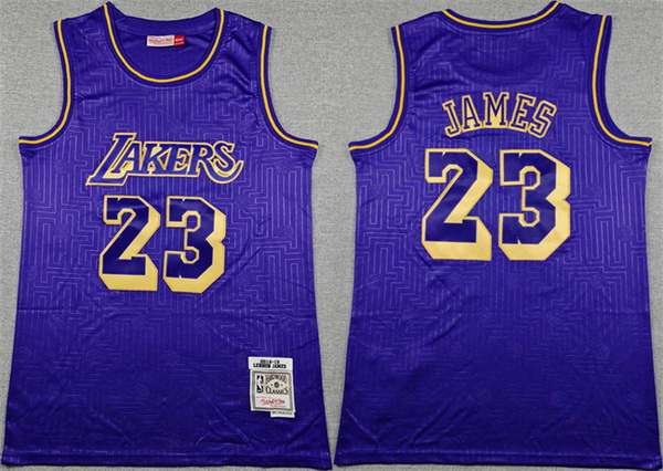 >Men Los Angeles Lakers 23 LeBron James Purple Thowback Stitched Basketball Jersey
