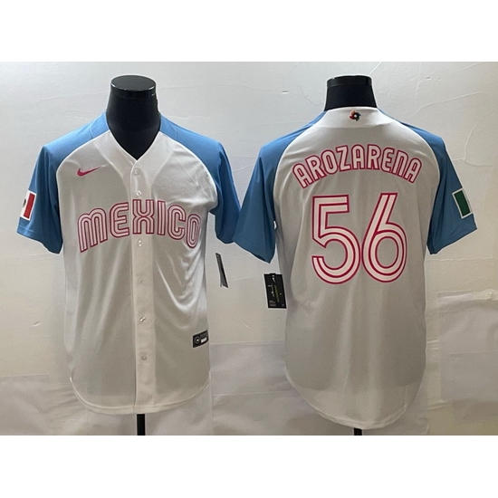 Men Mexico Baseball 56 Randy Arozarena 2023 White Blue World Baseball Classic Stitched JerseyS