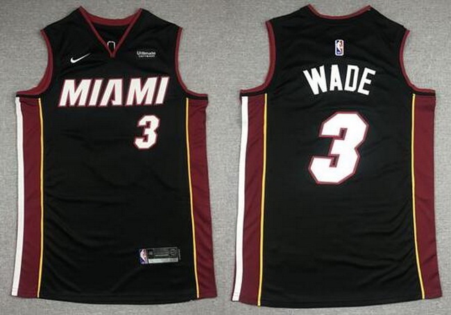 Men Miami Heat 3 Dwyane Wade Black Stitched Jersey