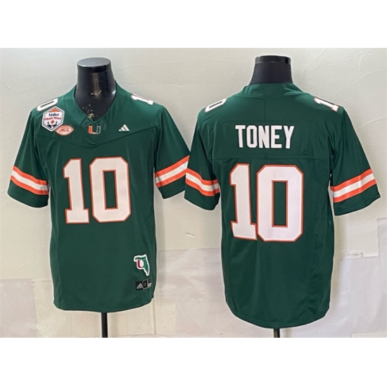 Men Miami Hurricanes 10 Malachi Toney Green F U S E The Fiesta Bowl Champions 26 Florida Patch Stitched Football Jersey