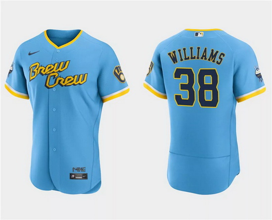 Home>MLB>Milwaukee Brewers>Men>Men Milwaukee Brewers 38 Devin Williams Powder Blue 2022 City Connect Flex Base Stitched MLB Jersey