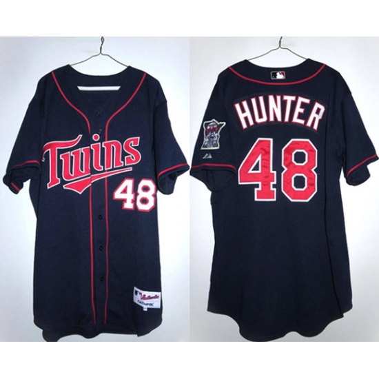 Men Minnesota Twins 48 Torii Hunter Navy Double Knit Stitched Baseball Jersey