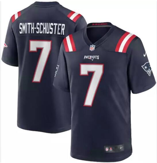 Home>NFL>New England Patriots>Men>Men New England Patriots 7 JuJu Smith Schuster Navy Stitched Game Jersey