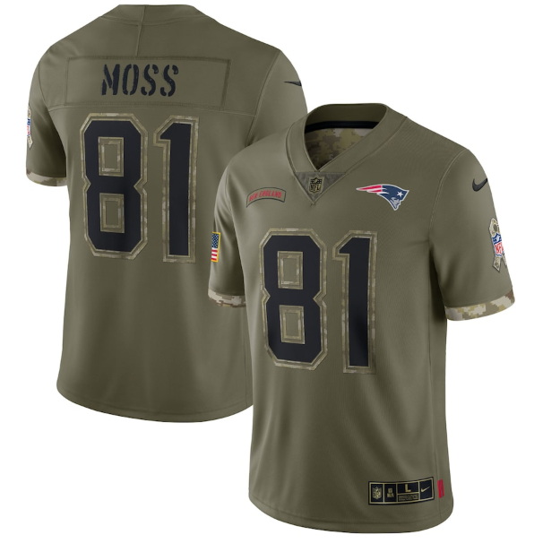 Home>NFL>New England Patriots>Men>Men New England Patriots 81 Randy Moss Olive 2022 Salute To Service Limited Stitched Jersey