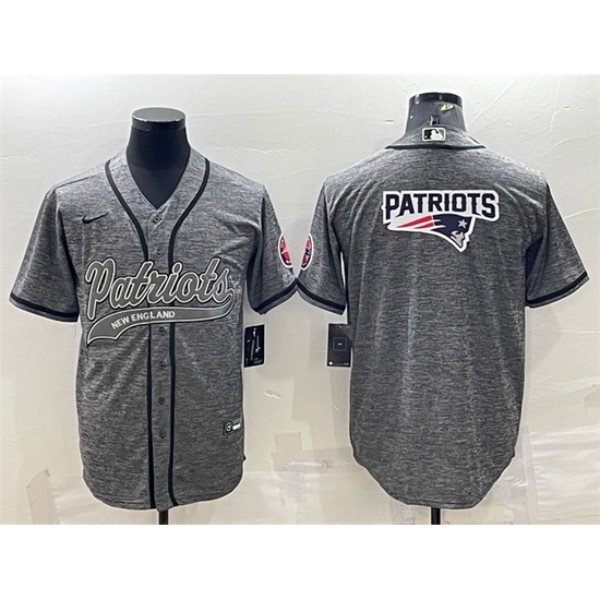 Men New England Patriots Grey Team Big Logo With Patch Cool Base Stitched Baseball Jersey