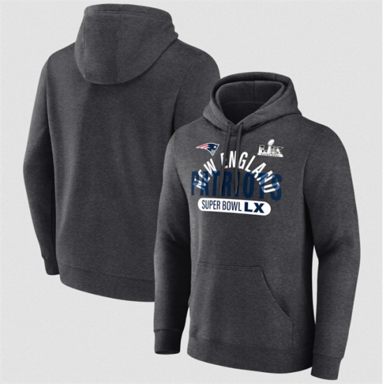 Home>NFL>2025 2026 Super Bowl LX>Super Bowl Hoodie T Shirts>Men New England Patriots Heather Charcoal 2025 Super Bowl LX Game Plan Hoodie