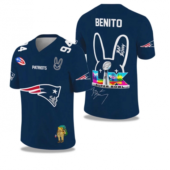 Men New England Patriots Navy 2025 2026 Bowl LX Print Jersey