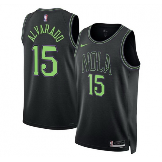 Home>NBA>New Orleans Pelicans>Men>Men New Orleans Pelicans 15 Jose Alvarado Black 2025 26 City Ediiton Stitched Basketball Jersey