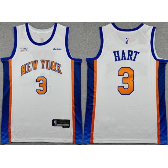 Men New Yok Knicks 3 Josh Hart White 2024 25 City Edition Stitched Basketball Jersey