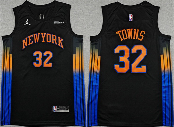 Home>NBA>New York Knicks>Men>Men New Yok Knicks 32 Karl Anthony Towns Black 2025 26 Statement Edition Stitched Basketball Jersey
