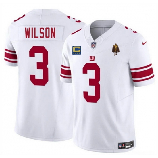 Men New York Giants 3 Russell Wilson White 2025 F U S E With 4 star C Patch And Walter Payton Patch Vapor Untouchable Limited Stitched Jersey