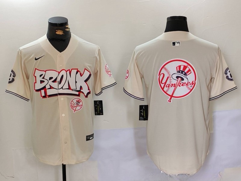 Home>MLB>New York Yankees>Men>Men New York Yankees Blank Cream The Bronx Graffiti V2 Vapor Limited Stitched Baseball Jersey 14