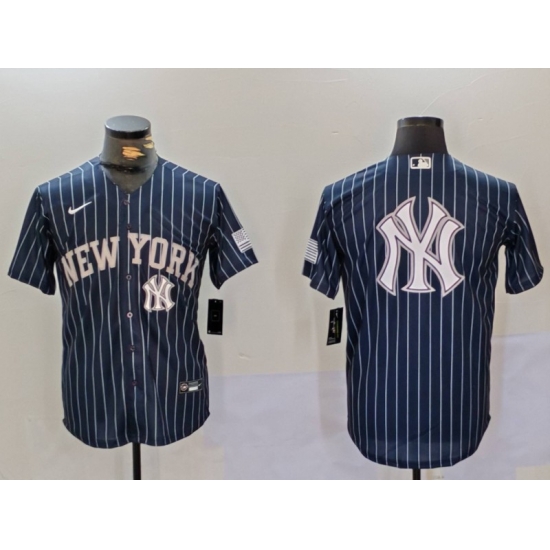 Home>MLB>New York Yankees>Men>Men New York Yankees Navy Team Big Logo Cool Base Stitched Baseball Jersey 010