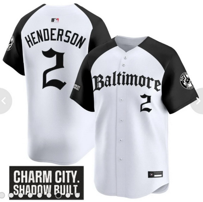 Men Nike Baltimore Orioles Gunnar Henderson #2 Charm City Shadow Built White Black Stitched Jersey