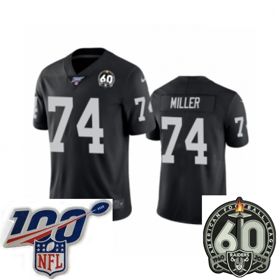 Home>NFL>Las Vegas Raiders>Men>Men Oakland Raiders #74 Kolton Miller Black 60th Anniversary Vapor Untouchable Limited Player 100th Season Football Jersey
