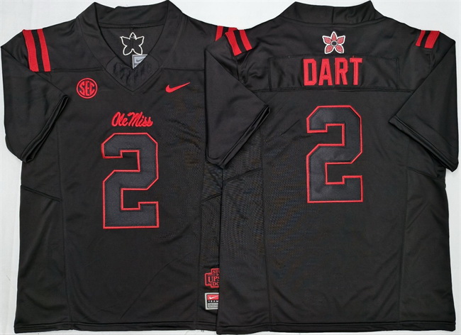 Home>NCAA>Ole Miss Rebels>Men Ole Miss Rebels 2 Jaxson Dart Black 2025 F U S E Stitched jersey
