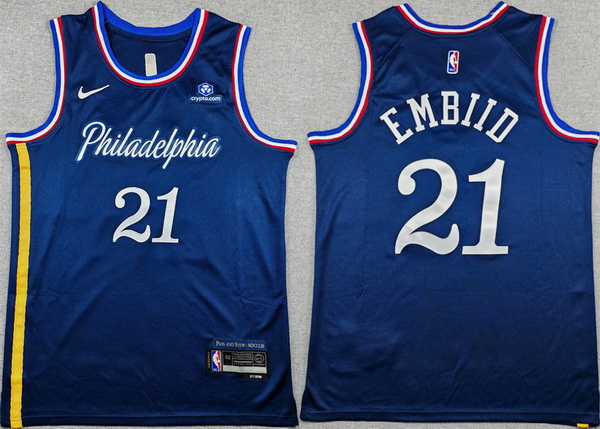 Home>NBA>Philadelphia 76ers>Men>Men Philadelphia 76ers 21 Joel Embiid Navy 2025 26 City Edition Stitched Jersey