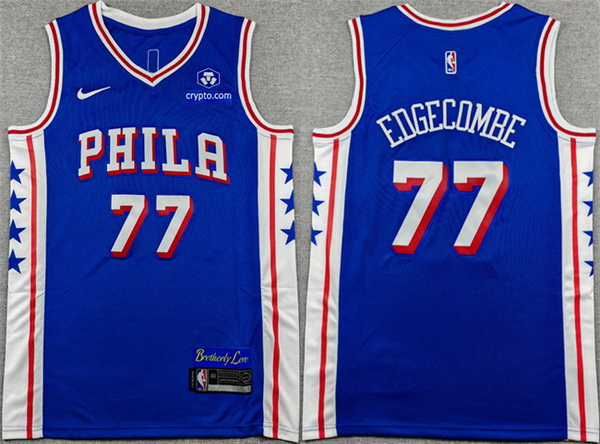 Home>NBA>Philadelphia 76ers>Men>Men Philadelphia 76ers 77 V J Edgecombe Royal Icon Edition Stitched Jersey
