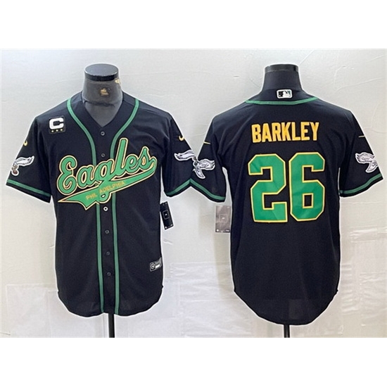 Men Philadelphia Eagles 26 Saquon Barkley Black Gold With 3 star C Patch Cool Base Baseball Stitched Jersey