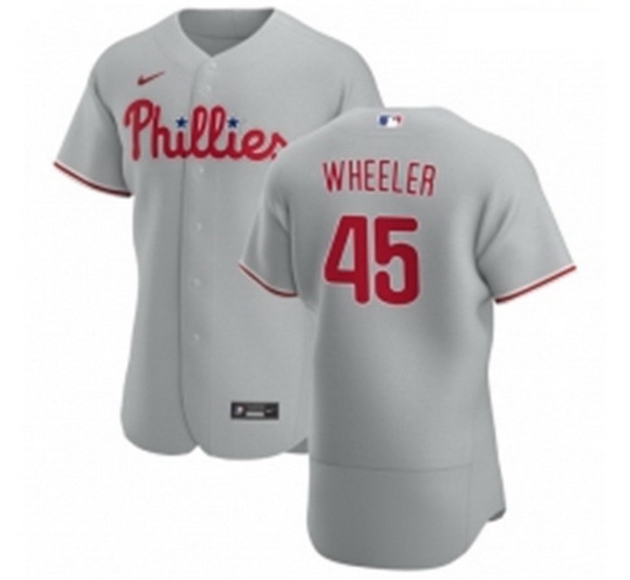 Home>MLB>Philadelphia Phillies>Men>Men Philadelphia Phillies 45 Zack Wheeler Men Nike Gray Road 2020 Authentic Player MLB Jersey