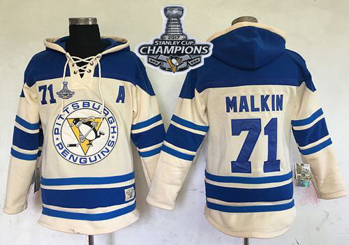 Home>Hoodie T Shirt>NHL Hoodies>Pittsburgh Penguins>Men Pittsburgh Penguins 71 Evgeni Malkin Cream Sawyer Hooded Sweatshirt 2017 Stanley Cup Finals Champions Stitched NHL Jersey