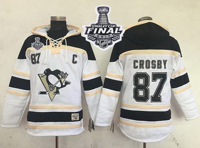 Home>Hoodie T Shirt>NHL Hoodies>Pittsburgh Penguins>Men Pittsburgh Penguins 87 Sidney Crosby White Sawyer Hooded Sweatshirt 2017 Stanley Cup Final Patch Stitched NHL Jersey