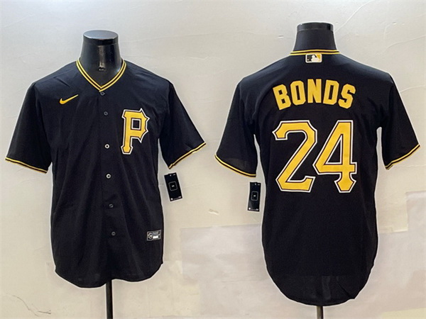 Men Pittsburgh Pirates 24 Barry Bonds Black Cool Base Stitched Baseball Jersey