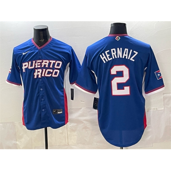 Men Puerto Rico Baseball 2 Darell Hernaiz Royal 2026 World Baseball Classic Road Stadium Stitched Jersey