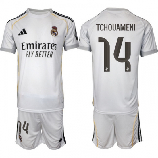 Men Real Madrid 2026 Soccer Jerseys White #14 TCHOUAMENI
