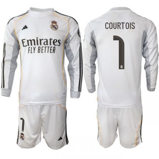 Men Real Madrid 2026 Soccer Jerseys White Long #1 COURTOIS