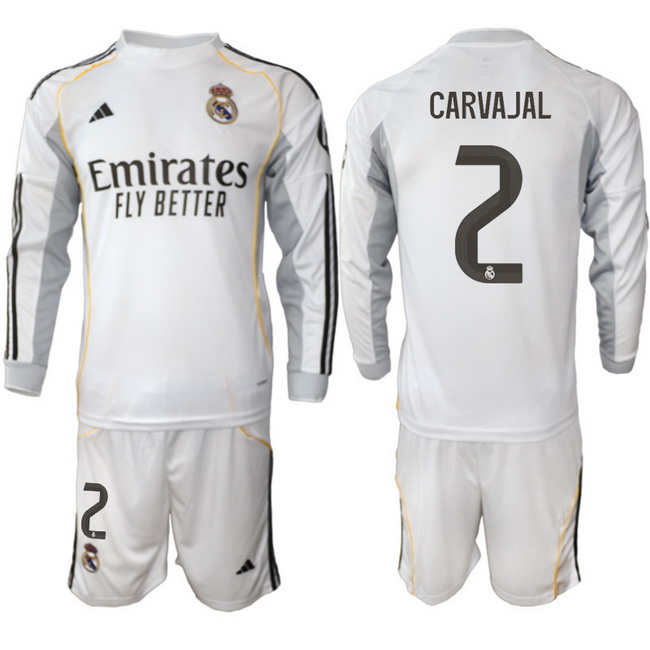Men Real Madrid 2026 Soccer Jerseys White Long #2 CARVAJAL