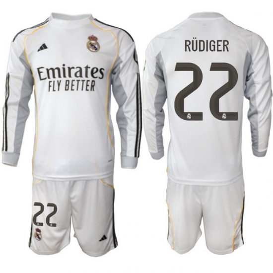 Men Real Madrid 2026 Soccer Jerseys White Long #22 RUDIGER