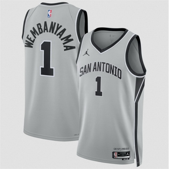 Men San Antonio Spurs 1 Victor Wembanyama Silver 2025 Statement Edition Stitched Basketball Jersey