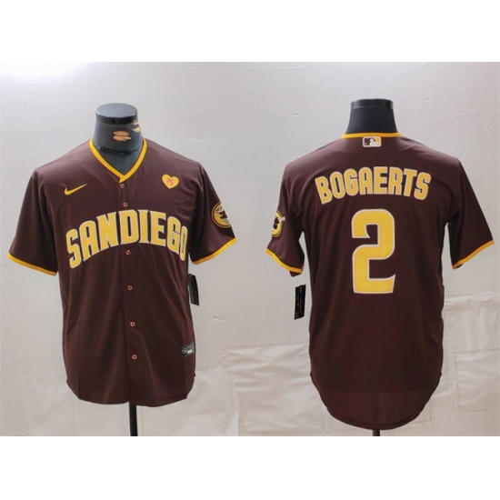Home>MLB>San Diego Padres>Men>Men San Diego Padres 2 Xander Bogaerts Brown With PS Patch Cool Base Stitched Baseball Jersey