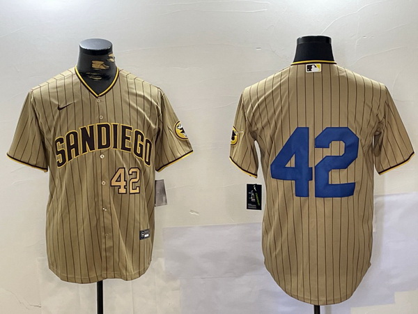 Home>MLB>San Diego Padres>Men>Men San Diego Padres 42 Jackie Robinson Tan Cool Base Stitched Baseball Jersey 2