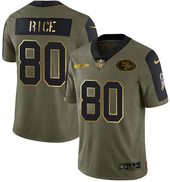 Home>NFL>San Francisco 49ers>Men>Men San Francisco 49ers 80 Jerry Rice 2021 Olive Camo Salute To Service Golden Limited Stitched Jersey