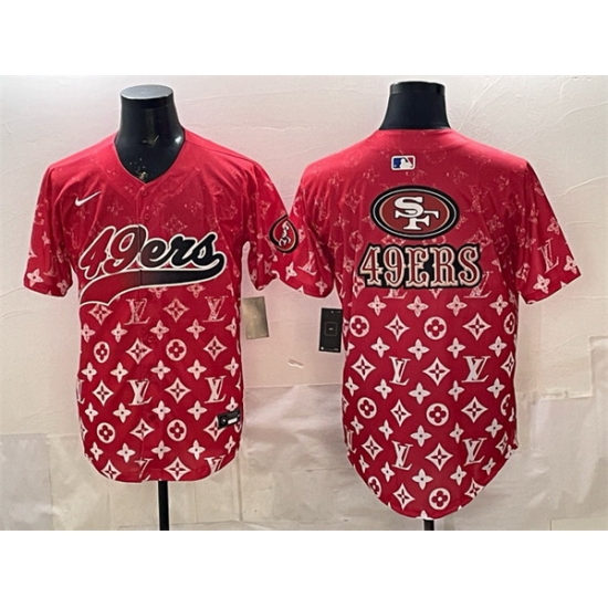 Men San Francisco 49ers Team Big Logo Red Limited Stitched Baseball Jersey 1