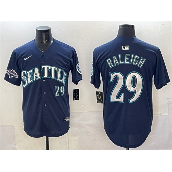>Men Seattle Mariners 29 Cal Raleigh Navy With 2025 AL West Division Champions Patch Limited Stitched jersey