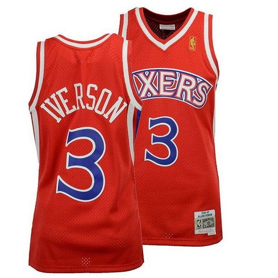 Home>NBA>Philadelphia 76ers>Men>Men Sixers Red 3 Iverson Throwback jersey