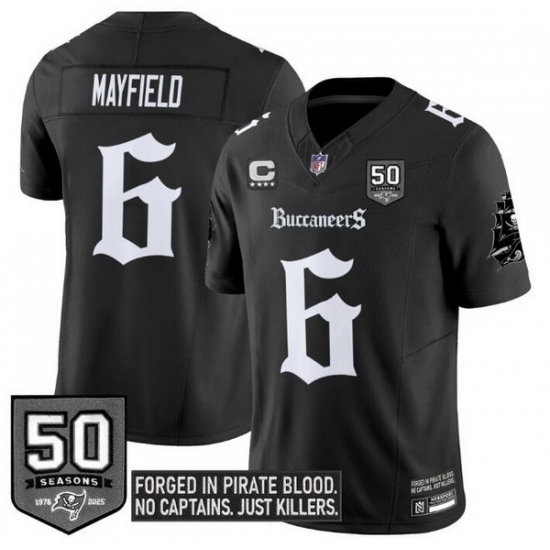 Men Tampa Bay Buccaneers 6 Baker Mayfield Black F U S E 50th Season 26 4 Star C Patch Gothic Pirate Shadows Edition Limited Stitched Football Jersey