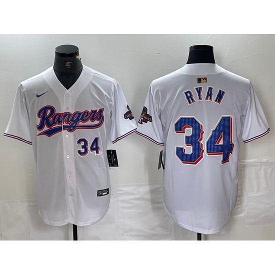 Men Texas Rangers 34 Nolan Ryan Number White 2024 Gold Collection Limited Cool Base Jerseys