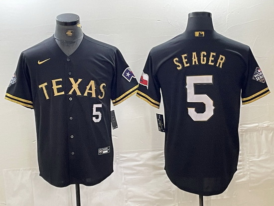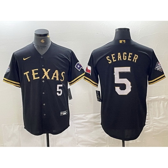 Home>MLB>Texas Rangers>Men>Men Texas Rangers 5 Corey Seager Number Black Gold Cool Base jerseys